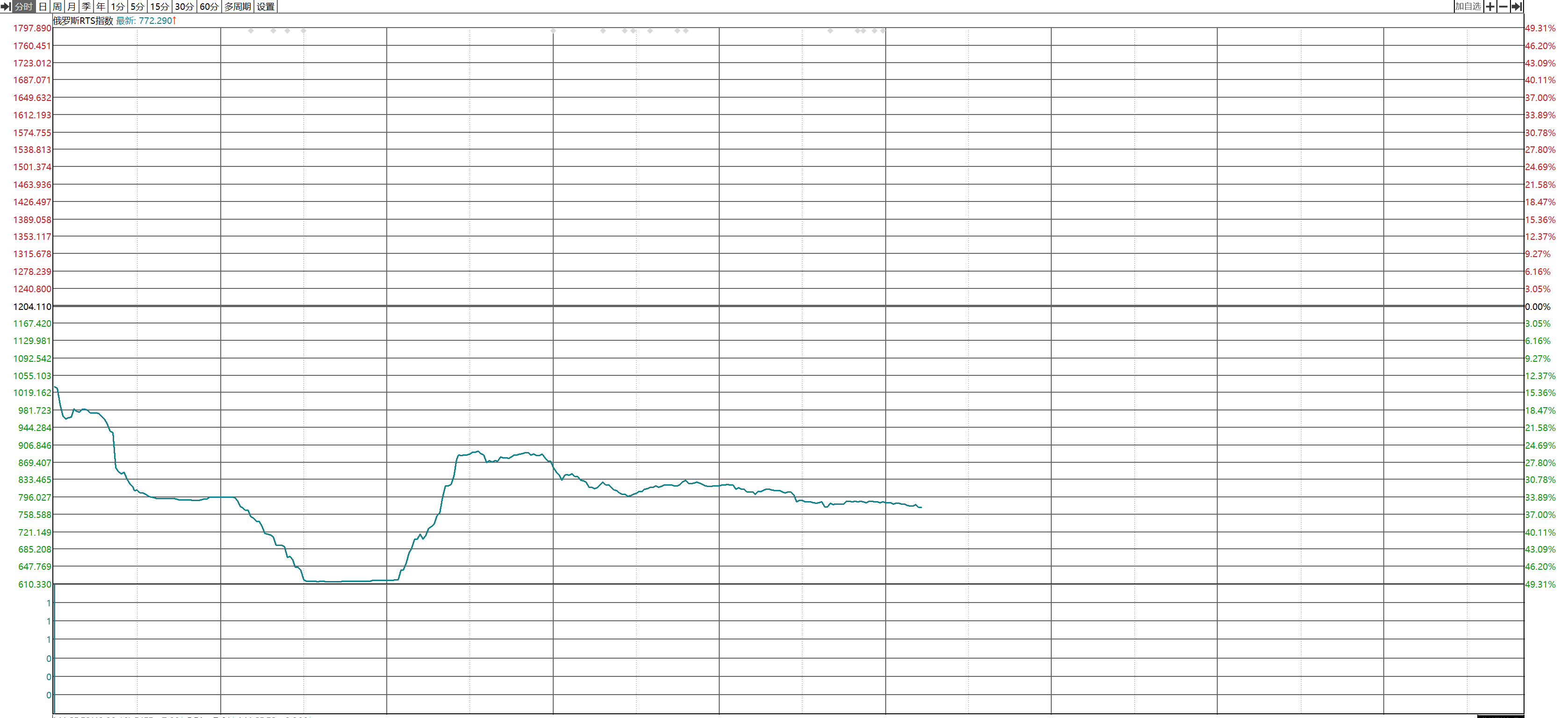 俄乌局势进一步升级,炮火燃起惊动全球资本市场,局势变的更加严重,引发各路资本出逃。今天莫斯科交易所照常交易,但开局就暴跌,截止到北京时间15:35分,俄罗斯RTS指数,已经跌去35%,非常可怕的下跌行为。
