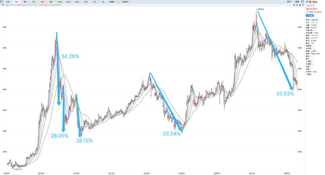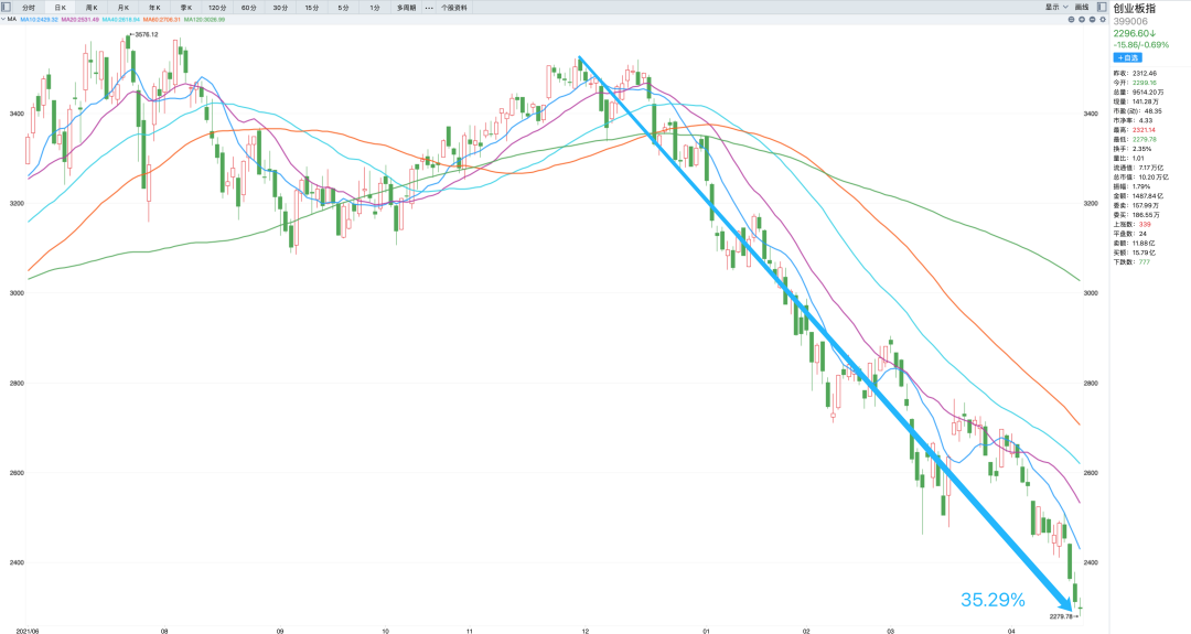 对于许多人而言,恐怕最深感的有,2002-2005、2008、2010-2013、2015、2018等等不同年份或阶段的下跌周期。今日想来,都还会心有余悸,每一段历程,都不是轻松的度过,而且往复循环,虽不等同,但异曲同工。现在的情况呢?确实又不能和过往的每一次作简单的时间和空间对比。过往任何时候,都没有现在这般复杂的局面,这是大家有共识的。不过,这也不应该由此而悲观恐惧的,事物发展的规律总是会有个度,过犹不及。关于大盘指数的时空变化关系,我们早前有过一些研究,对于过去10年以来的数据统计,每一轮高低点的反转区间幅度,大概最大空间就在35%的水平上下。以当前阶段看,回溯2021年高点,至3月16日的3942点,其持续累积的最大跌幅已经高达35%。