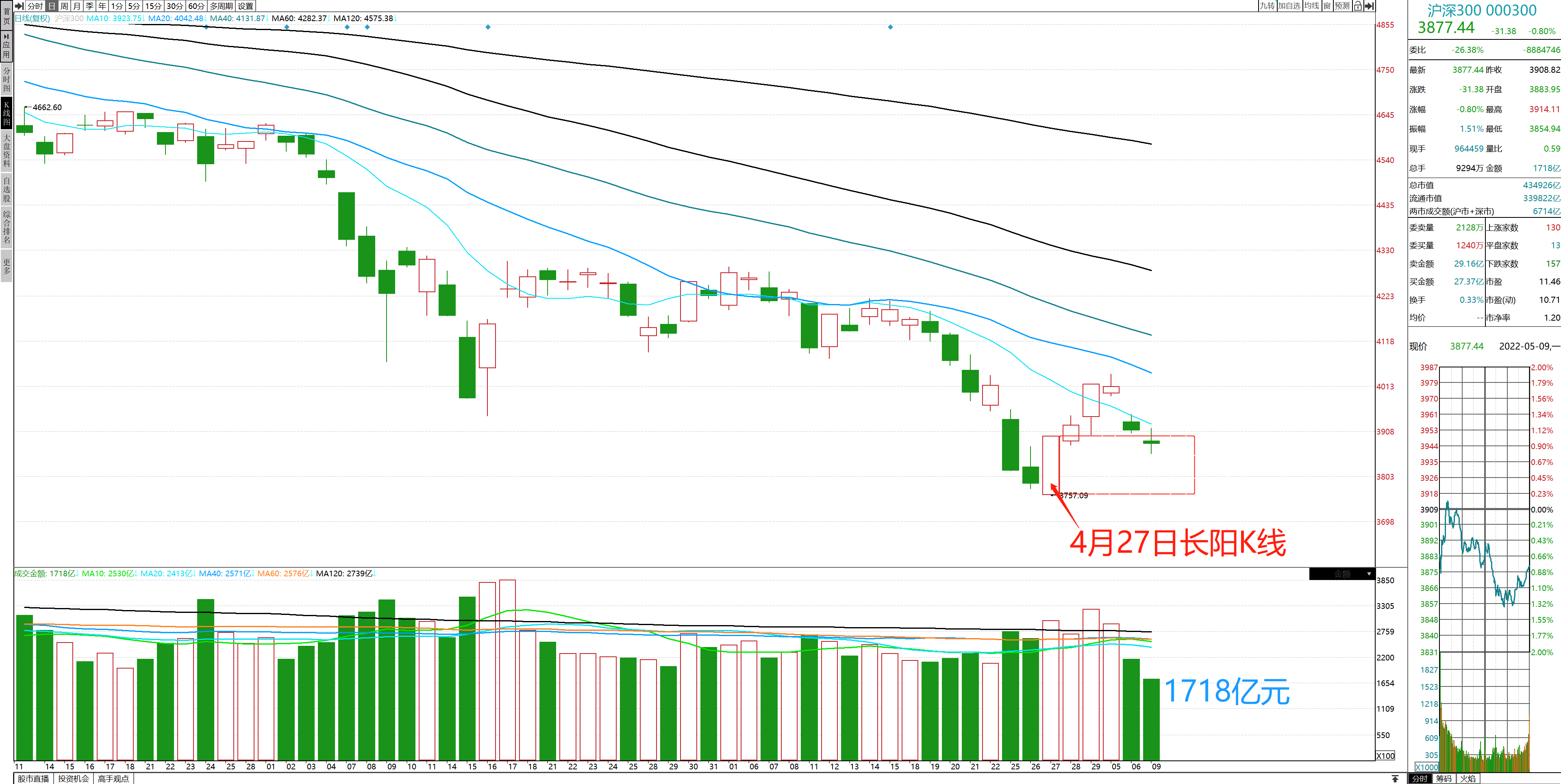 今天只有1718亿元,成交量能大幅度缩减,从跌势结构而言,这是一把双刃剑。以下跌趋势看,创新低量很容易创新低价,任何一个外力影响都会加速这一进程,这是相对不好的发展路径。但也因为如此,而容易出现“创新低价未创新低量”的反弹先兆,因为再跌要么继续缩量,要么就会激发出新买力而反攻弹升。这实际上倒也不怕再跌。而另外一个情况则是,缩量是必要的,筑底的典型过程,特别是显著的压力形态之下,唯有缩量可以解忧,用时间来换空间,是再好不过的走势了。只是,这个过程会造成价格难涨,买力不足,推升乏力。今天就是这样的局面。但显然平稳于4月27日的长阳后,具有积极的稳定并酝酿短多预期。这又是积极的一面。