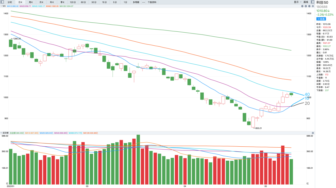 关于这个技术演变关系,我也是早已经阐明其中的关系。沪深300指数就是看20日均价线不可改变的下行压制,而科创50指数则是受制于40日均价线的下行制约,这些都是比较直观的表现,很容易理解。不过,虽然如此,但我们依旧认为暂时还不必担心或惧怕马上又大幅下挫。这里面不单纯是技术结构支持,还有仍然是内外缓解给A股创造了比较好的窗口期,这对于压抑已久的A股投资者而言,的确是一个较好的交易机遇。