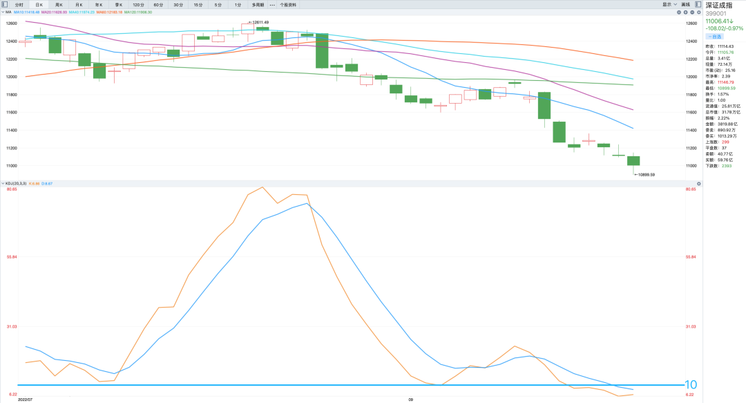 从技术条件上预判,全球股市都将迎来强劲的反攻动作。其技术逻辑,就在于A股、美股两大全球主要资本市场,核心指数在经过持续性的盘跌后,都进入了技术极值状态,具有随时发生强力反攻的技术预期。A股市场,我们此前阐释,上周会显著的反应出科技类指数的技术极值特征,且随着持续盘弱,主板市场指数也会逐步踏入极值范围里头。比如创业板指数、科创50指数、沪深300指数、深圳成份指数等等。依照我们过去大量的统计研究,均给出了极值后迎来强力反攻的技术走势,且往往极值现象持续的时间越长,向下扩张的空间越大,其后续发生反攻的力度也越大,持久力也越强,往往可以创造非常高的交易空间。特别地,当K和D值都低于10以下,且持续时间持续扩张,其后的反攻行情都不会太小,甚至带来阶段性的反升行情。这在今年4月份的反弹行情中,就是这样的技术基础,其后就产生了较为持久的反弹行情。