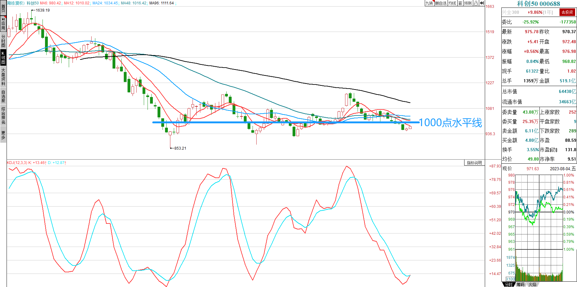此次已经数周低于1000点以下,且周K线技术指标极值后交叉回升,出也都逐步调整出可持续震荡脉冲上行的技术关系。由此推演分析,我们认为技术上也具有向上回升的预期发展。只是就客观结构而言,无论是日线,还是周线,也都反应出在1100点区域处的技术障碍。