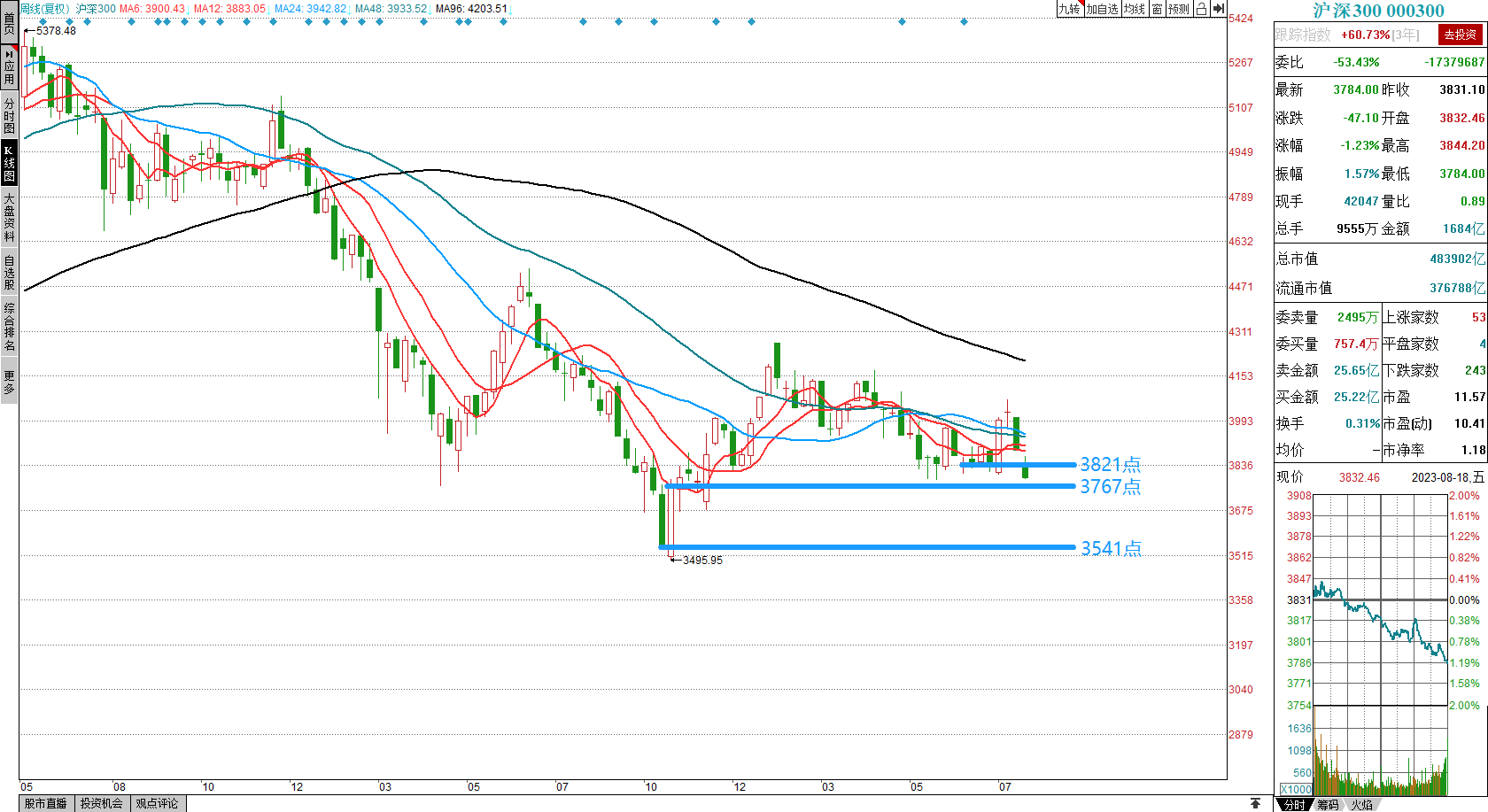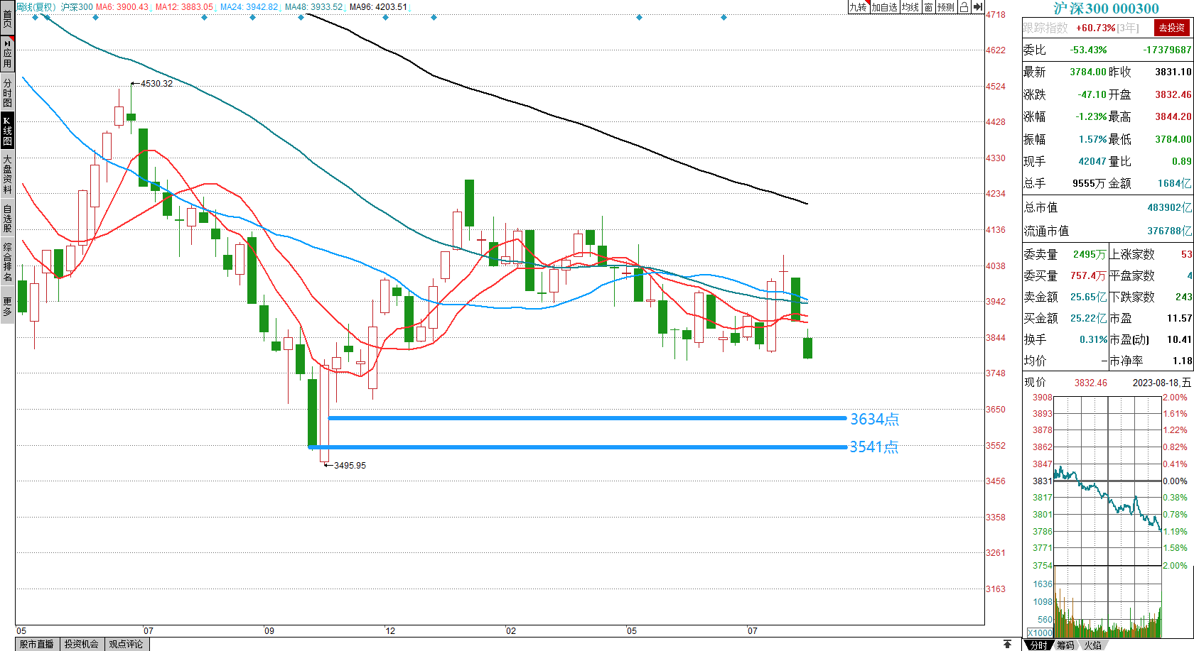 而一旦如此会产生的结构演变,就很容易向下扩展多一些空间,这样甚至会诱发对去年收盘低点的3541点的考验。其逻辑预期主要在于技术关系上,由于再跌会向下远离自5月份以来的平台区域,这个位置很容易形成破位后的技术反压区域,对立马反升构成压力。这个技术关系,在日K线上观察,也是有异曲同工之妙,再压低也都需要一些空间来稳定指数,这样就很容易往3634-3508点区域发展。由此在周、日K线上的技术关系,都会使得技术层面的考验增多,而且当前市场悲情肆意,也最容易再失控而慌乱于此。就单纯的技术角度而言,我们会偏向于上述逻辑来作预防。但就非技术层面而言,各方角力复杂,且整个市场也面临千钧一发的时刻,的确也是存在快速爆破后,也会快速修复,市场预期比较强烈,人心思涨,再跌容易砸出类似去年多次出现的黄金坑。我们认为这是值得思考的机遇,这也在技术关系上,能够得到启发。就上述分析推演,即便按照周、日K线的技术关系,回到3767-3508点区域,距离3784点,并不遥远,以最低点位置来看,也就200点有余,这并非是十分恐怖的再跌空间,除非是即便到了3508点或更低点,也无从建立反升预期,那么这就已经不是一个维度来看待当前市场了,那自然是另当别论。我们给出较积极判定,即3767-3508点区域,要做好随时反攻拉起的准备。只是考虑一跌就容易引发恐慌预期,则是存在一个急跌顺势而扩大回撤空间的预判,但3634点-3508点区域,的确是要重视,这在日、周K线结构上,都能够推演出比较合乎技术关系的点位。