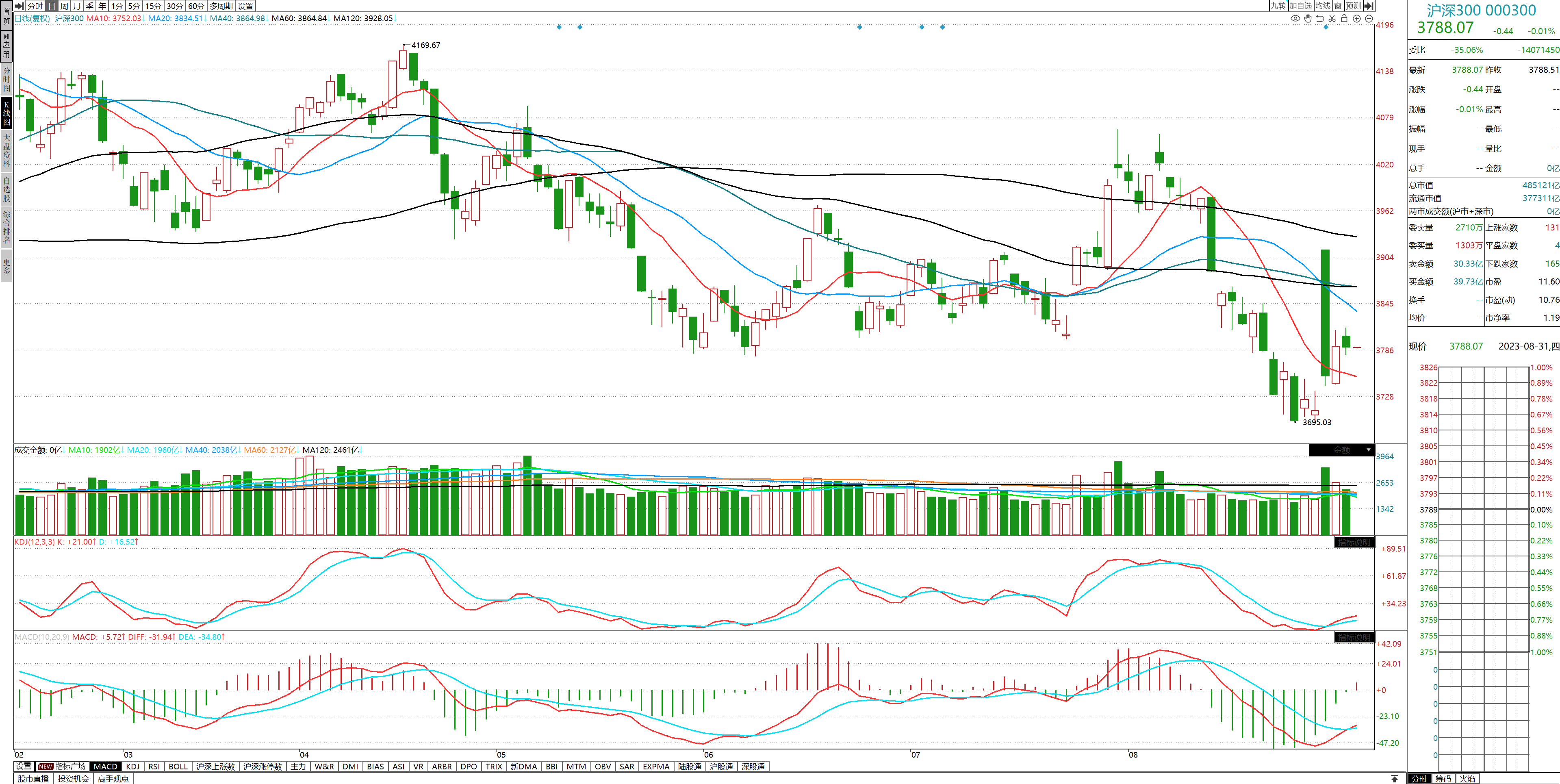 这一逻辑,在各周期结构上,都有显著的体现。比如月K线上看,反映2年周期的24月均价线会持续下行,且已经低于4200点之下,这都意味着即使由此反升上行,也会在24月均价线的下行关系下受到阻碍。