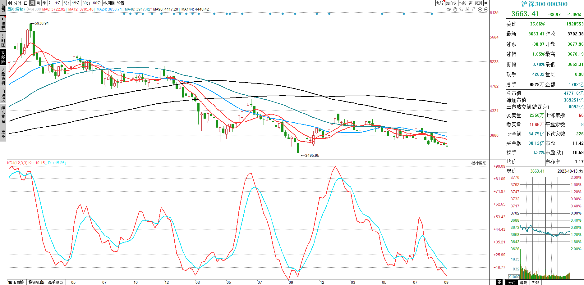 而且非但如此,就短期结构来讲,我们对沪深300指数的技术研判,也会使得任何形式的再持续压低,都会带来周K线结构的技术极值,这样的情况,在以往的统计研究中,也不是多见的。