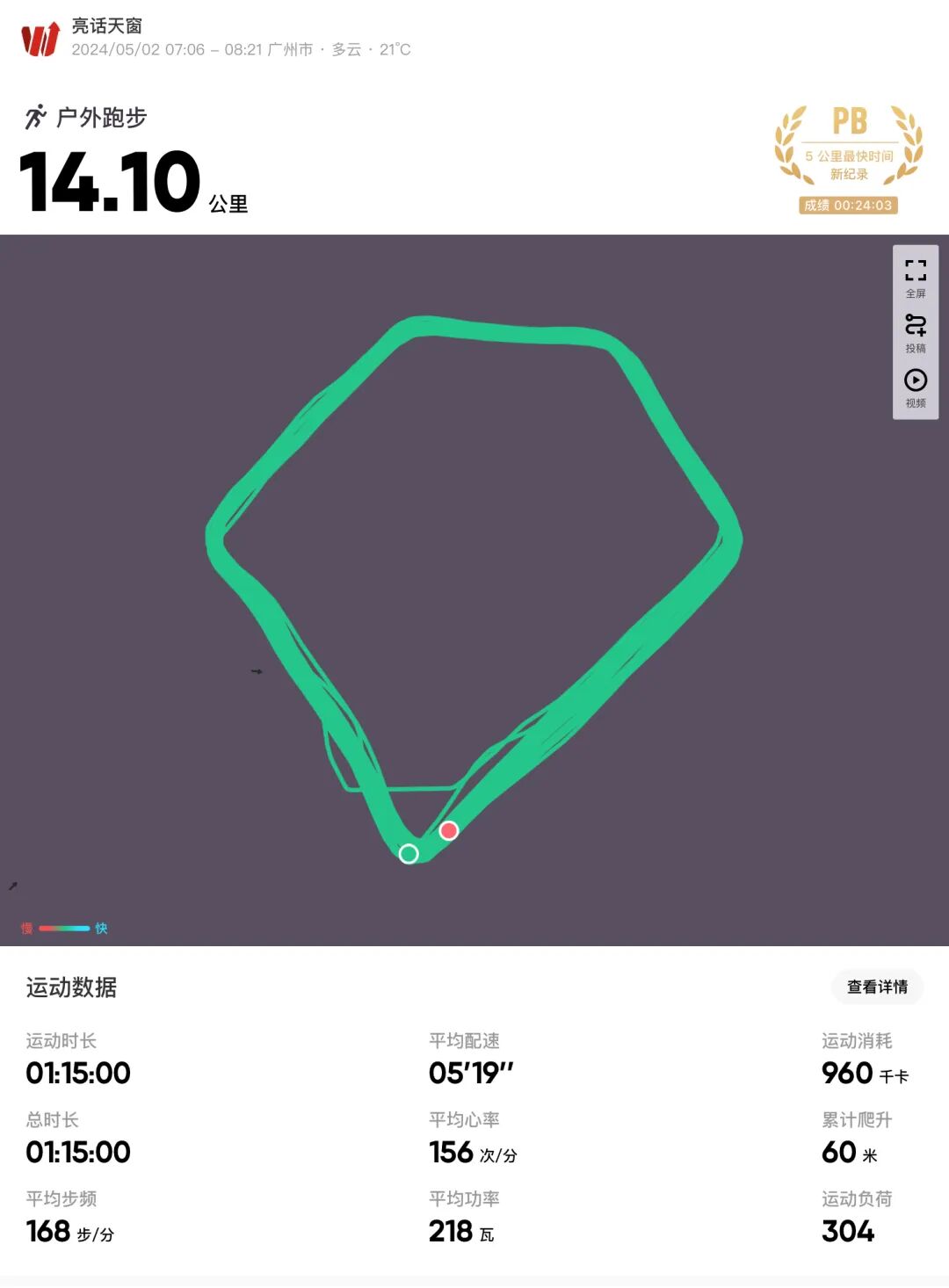 但日K线结构,的确又已经取得了绝对优势,这就使得纵使动荡甚至再回落,也不至于马上会造成已经取得的技术优势被改变。如此则回调依旧可以建立在日K线优势基础之上,展开投资和交易安排。逻辑上,还是一样的。就是不苛求天天大涨,或者一路将指数拔高而回调。技术上由于日和周K线结构不可调和的矛盾,可以脉冲式看待行情发展即可,也就是不求天天涨,也不惧日日跌。震荡拉锯,退一进二的脉冲式发展,会是大概率演变过程。且借鉴恒生指数向上越过48周均价线后,震荡拉锯后向上挺进,有望持续发力拓进挑战96周均价线。由此展望节后A股市场的演变关系,我们在沪深300指数上,也是给予这样的积极展望,向上拓进越过48周均价线,再震荡拉锯拓进挑战96周均价线的发展态势。当然,实际演变情况必然会有出入,哪里能够那么精确和一致。但总体而言,我们节日前阐释,基于沪深300指数的演变关系,的确日K线的结构发展势头喜人,已然形成五子送财的涨势结构,对震荡趋上的发展关系可以乐观积极看待,只是周K线矛盾不改,那就震荡拉锯,脉冲式挺进,就是顺理成章的发展预期了。A股还在休市,港股已然突围,这算是给A股打了个样板,期待A股节后开市也能够节节攀升。A股的小伙伴们,继续休假,好好过节,玩的愉快!我自己还是跑跑步,今天广州总算没怎么下雨了,路面干了,温度也不高,跑步还是蛮舒适的。早上75分钟的间隙跑,完成度还是蛮高的。给自己点个赞!跑一跑,健康运动不能少